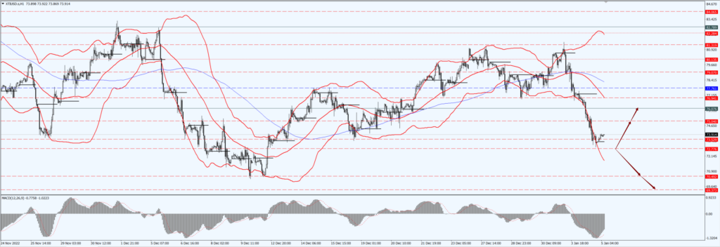 如果油价运行于 72.77 一线上方,届时则关注 75.04 和 76.07 两个位置的压制力度;