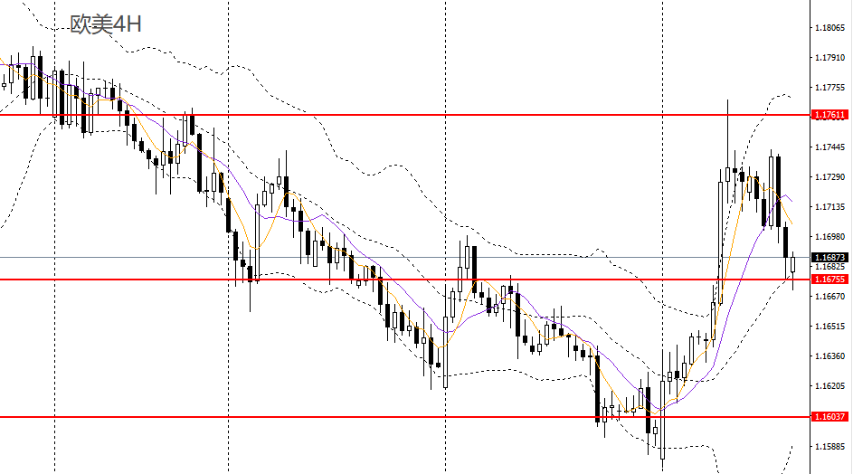 欧美周三小幅收跌,日线RSI跌至50附近,4小时上未能突破前高1.1760,且再度回踩1.1670附近支撑,如继续维稳于上方,可延续多头思路。