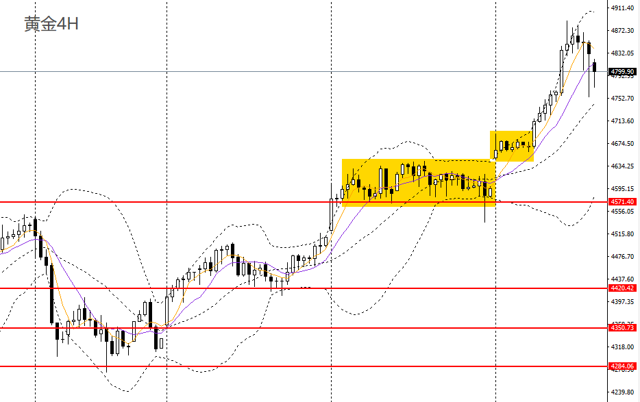 黄金周三收流星阳线,日线RSI位于超买区附近,4小时于4890一线多次遇阻,多头动能放缓,短线多单建议离场,4820附近承压可进空。黄金/人民币如反抽至1075附近不破可进空。