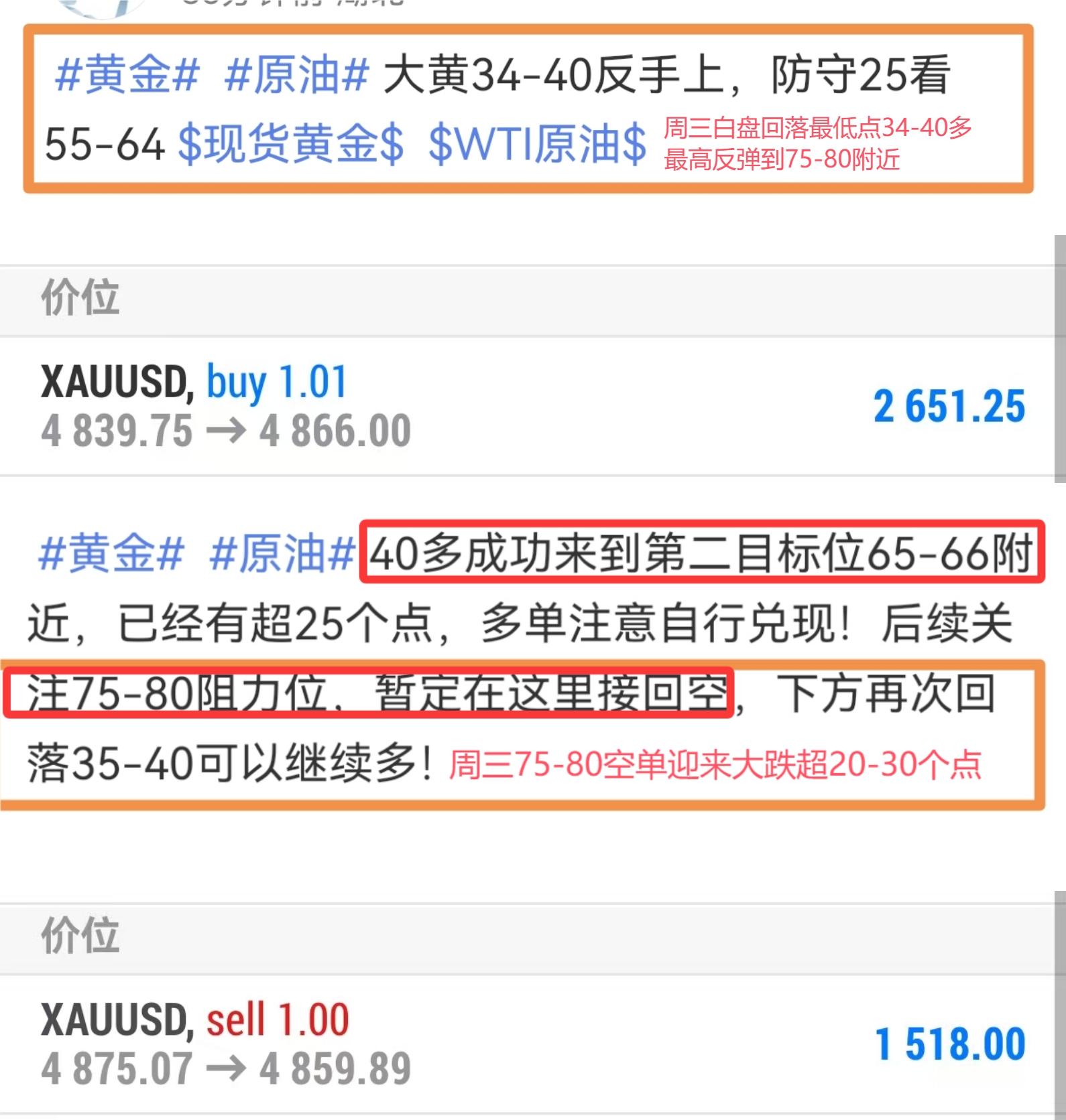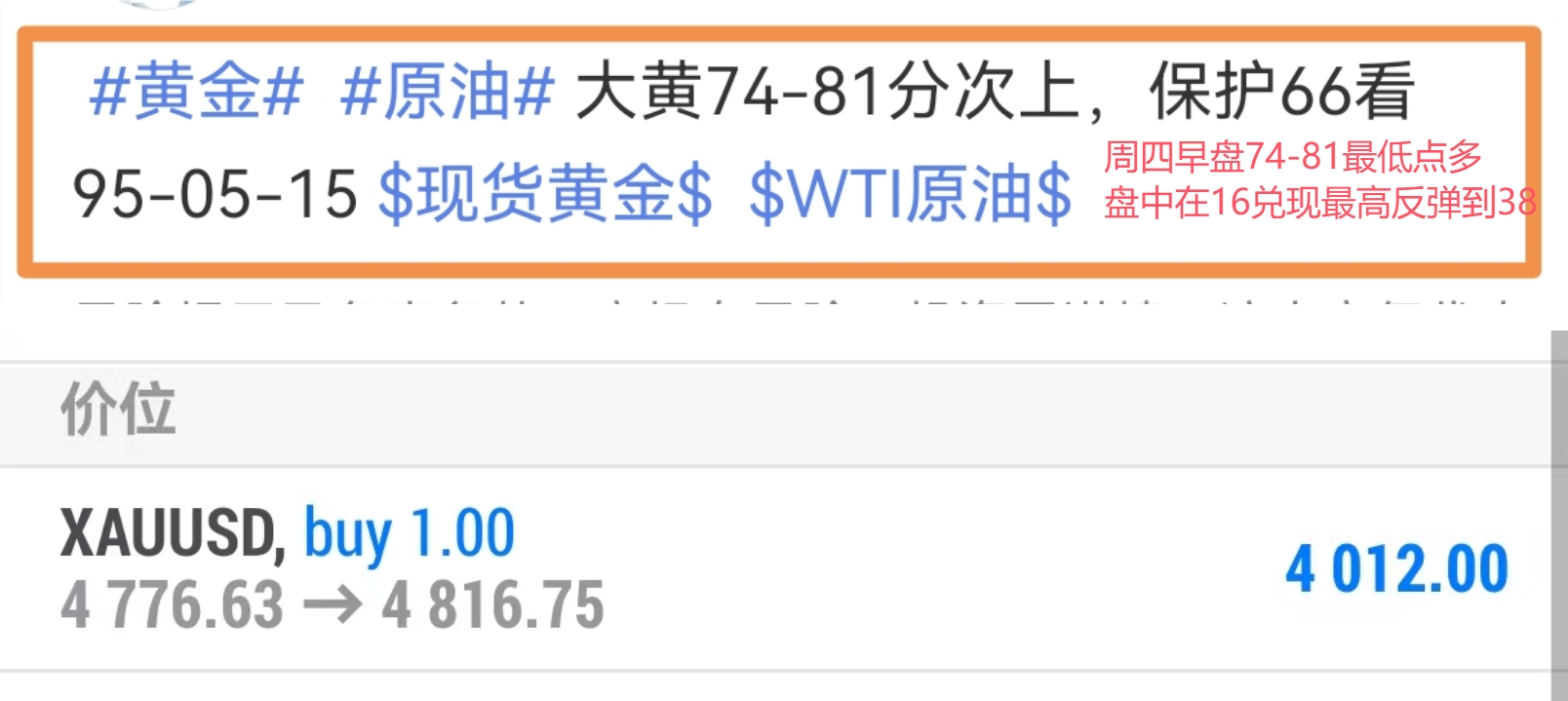 ① 早间74-81多单成功兑现4815目标位,拿住有30-40霉,后续的加速反弹只要不提前开空都是赚的