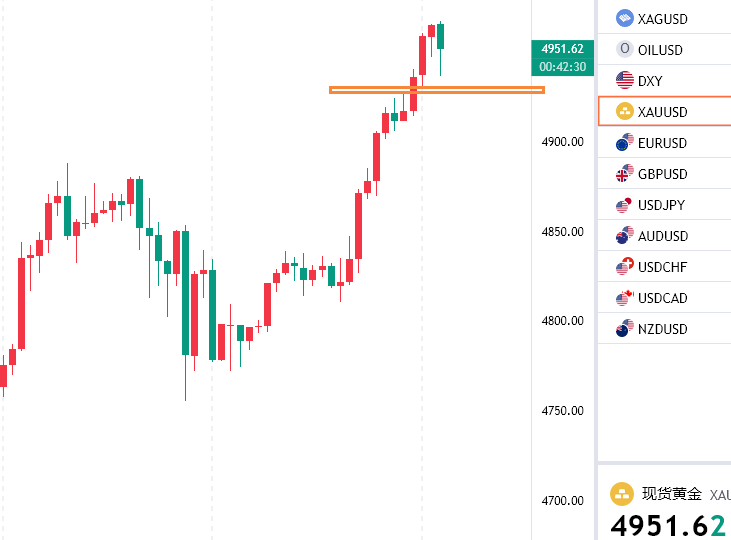 近期市场就美对格陵兰岛的争夺情况再度掀起了一阵避险的风,虽然特朗普声称不会采取武力解决,但是欧洲国家对此表示怀疑,因为特朗普对格陵兰岛势在必得,不管何种方式,不会放弃,所以市场紧张的氛围虽有缓解但是没有消散,然后就是俄乌局势,目前虽然再度进入谈判阶段,但是市场预期并不理想,加上美联储整体宽松的基调,多重利好支撑黄金走高,上个交易日探底企稳之后在晚间如期再度回升,突破4840分水岭压力位后加速拉伸,再度走出超100美金的强势拉伸,一天一个大台阶,5000大关一步之遥,日内继续保持回踩接多的思路,同时市场预期中的5000大关临近,高位谨慎走出大幅调整,亚盘回踩多为主,欧美盘关注市场走势情况,高位可以尝试做空,不要过分盲目看涨!