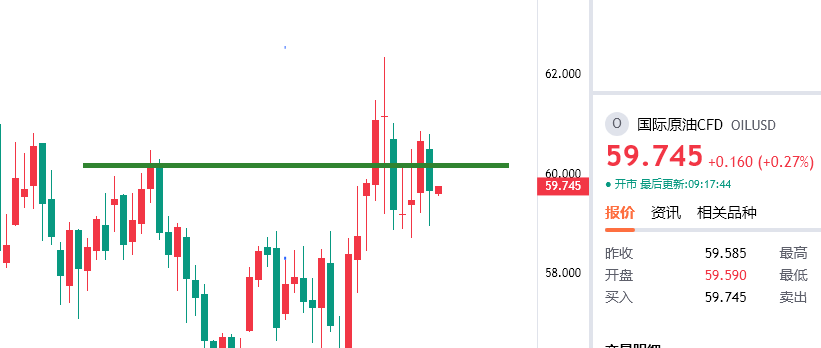 原油反抽60.3附近空,防守61.2,目标看58/57一线