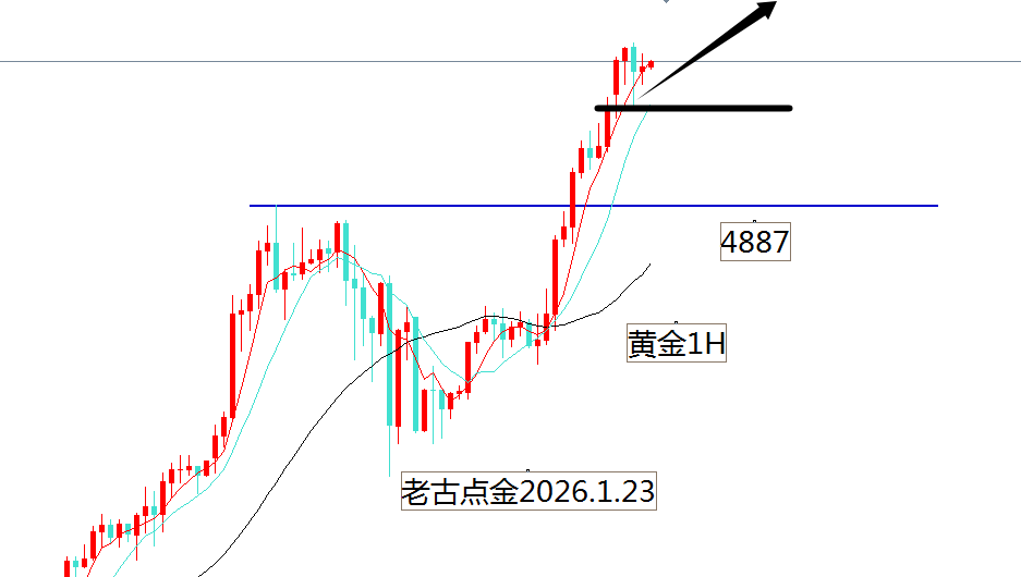 形态支撑已经上到了4887,今天的黄金价格在这个位置上面都可以坚持看涨,小时的支撑也是抬高到了4900了,今天的白盘老古预估都是多头天下,要修复和回踩可能会在晚上的美盘了,另外大家要防止5000这个位置,它是历史大压,可能会出现跳水的情况,我们不猜测只是要知晓,遇见跳水千万不要在接多,