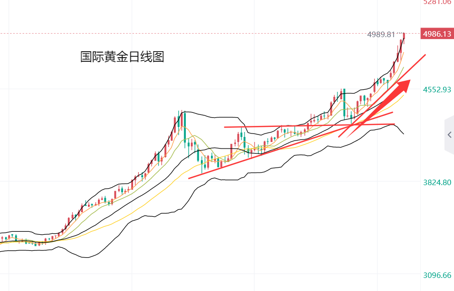 从之后的走势看,上周五亚盘开盘后,黄金短线上涨,刷新历史新高至4967美元,遇阻后回落4936美元企稳,再次上探4967美元遇阻,黄金开始震荡回落,欧盘盘中跌至4900美元企稳,此后金价震荡回升,并在美盘盘中向上突破,刷新历史新高至4989美元,短期表现依旧强势。总体来看,黄金回落4900美元位置企稳上涨,接近目标位置5000美元,走势基本符合我们的看涨预期。