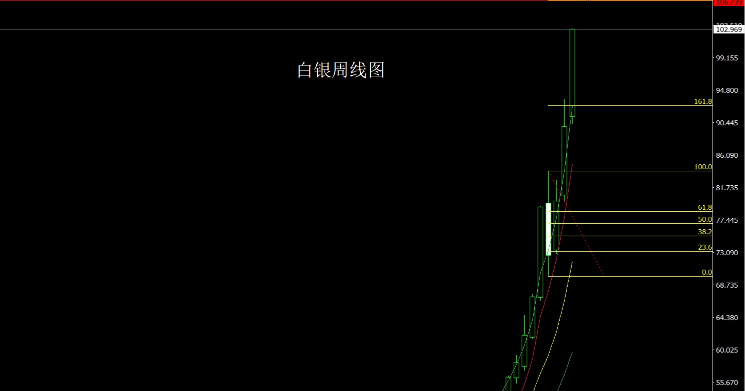 白银:下方37.8的多和38.8的50.75的多和52.7的多减仓后止损跟进在82,今日如果先回来101.2多止损100.9,目标看103.5和104.5和105和106和106.8附近,如果早盘直接冲击106.8做冲高回落准备。
