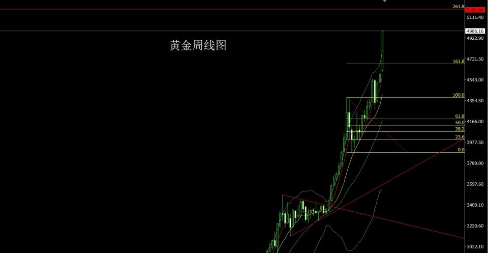 上周黄金市场周初高开在4627.8的位置后行情先回落给出4617.5的位置后行情受到美国总统强势言论的避险消息影响强势拉升,周线最高触及到了4990的位置后整理,周线最终收线在了4986.2的位置后,周线以一根基本饱和大阳线收线,而这样的形态收尾后,本周有继续冲高的技术需求,点位上,下方3325和3322的多和3368-3370的多和3377和3385多和3563的多减仓后止损跟进在4200持有,4176和4174的多和4187和4184的多以及4208和4205多止损跟进在4210持有,前一周4455的多减仓后止损跟进在4460持有,本周4970多止损4963,目标看5000个5012和5023和5032和5048-5052.