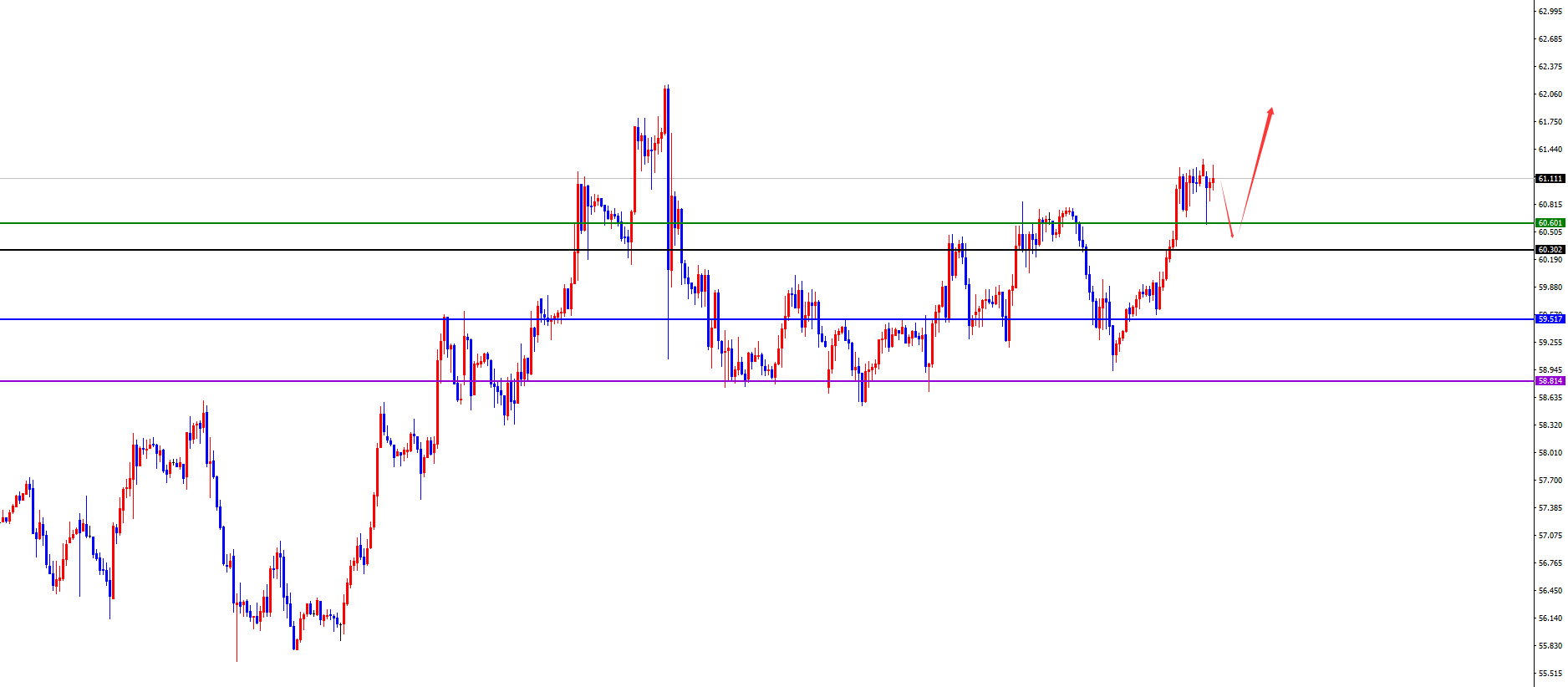 短线分水岭60.60附近,没有出现反转信号之前先看多