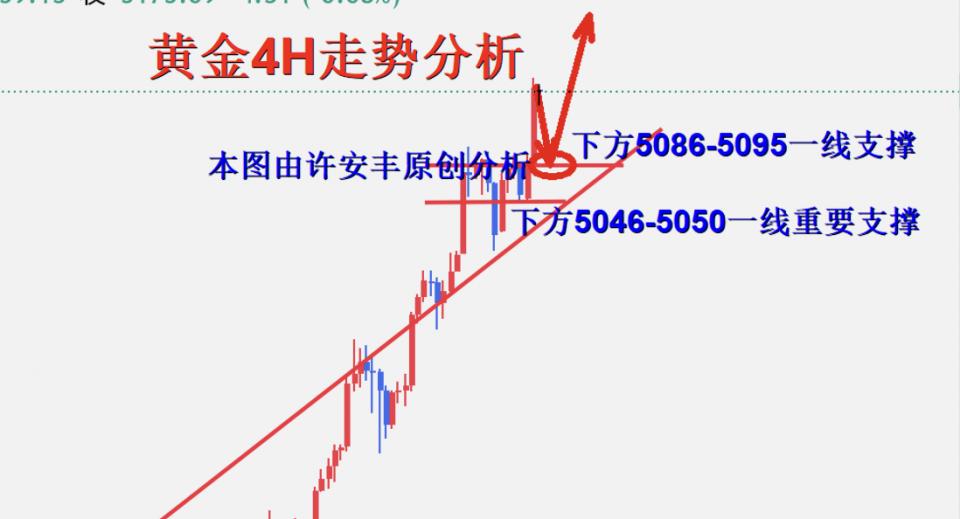 黄金凌晨冲击历史新高5183一线震荡至5179一线收盘,今天开盘在5177一线震荡延续,从近期黄金来讲,金价每次都是震荡后再突破新高,多头凶猛已经不言而喻,目前技术面处于震荡回踩调整势态,我们势必耐心等待回踩再择机进场做多,近期本人一直强调多头的可靠性,做多才是重中之重,只有把握住做多的趋势,再进行区间顺势把握,那样才可以完美拿捏住行情,目前下方短期支撑则维持于5086-95附近区域,回调于此位置附近继续做多,操作上继续保持大趋势看多不变,回踩做多为主,耐心等待回调后的入场机会,对黄金感兴趣却无从下手或者操作不理想的朋友可以与老许本人前来沟通交流。