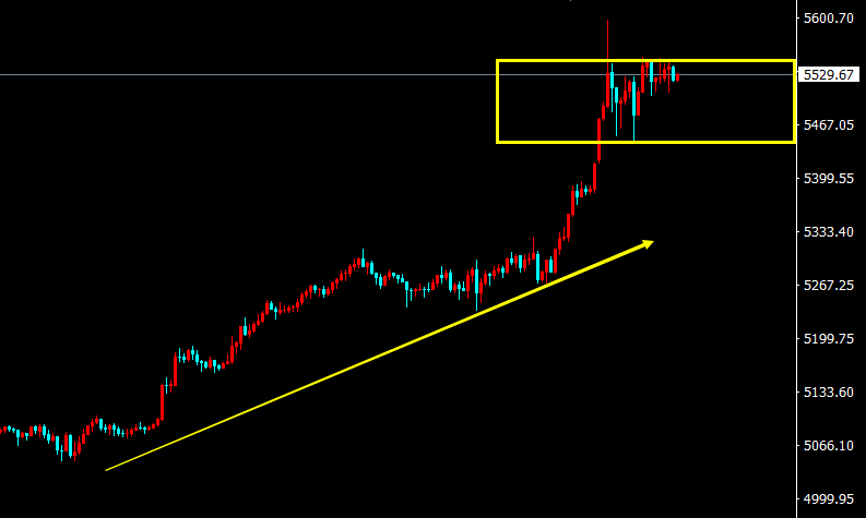 黄金,道旁白日忽再出,囊中黄金如有神,自本年度以来,黄金一路飙升,涨势如虹,凌晨公布的议息会议维持利率不变,释放出了降息信号,给黄金市场注入了一针强心剂,而地缘政治局势愈加紧张,避险需求也大大提高,再加上全球央行的购金潮也为金价提供了坚实的支撑,这些因素的共同加持之下,使得金价一路飙升,牛气冲天!当然,这只是我们所能看到的一些因素,其实背后有着更加鲜为人知的原因,我们要考虑的是价格如此的漫天涨势,最终的受益者是谁?当受益者最终逃离,而一旦发生变盘,大幅度回落!那么最终的受害者又是谁?很多事情很难通过表面来直击真真相,而往往真相都很难让人接受,抛开事实谈本质的话,商品的本身是否符合其真实的价格!反观技术面,早间直接拉升最高触及到了5598一线,一觉醒来,价格也变得十分的陌生,要用很长的时间去熟悉盘面,或许当我们熟悉了之后,价格又是另外一个样子了,目前的行情对于短线投资者来说就是巨大的挑战,毫无判断依据,个人建议还是观望一段时间,一旦出手,可能就一发不可收了,激进者可以尝试超短线,目前能做的是每单都必带好止损,严格控制风险,以小博大,激进者尝试围绕于5550附近做空,损60上方,目标5500-5480附近。