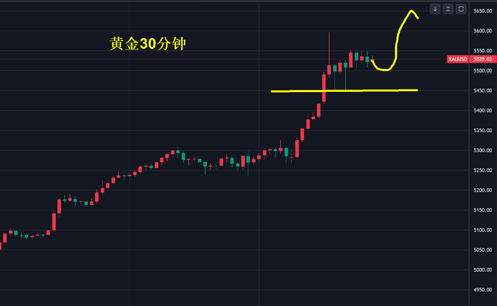 现在上涨的速度越来越快,时间被压缩,没有所谓的压力,更没有预知的高点,形态只有走出来才确认高点,5000美元瞬间击破,5300美元一越而过,5600美元转眼就到。