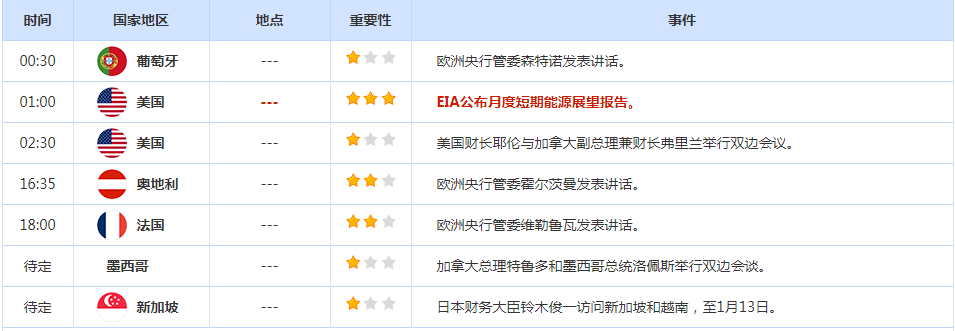 财经日历: