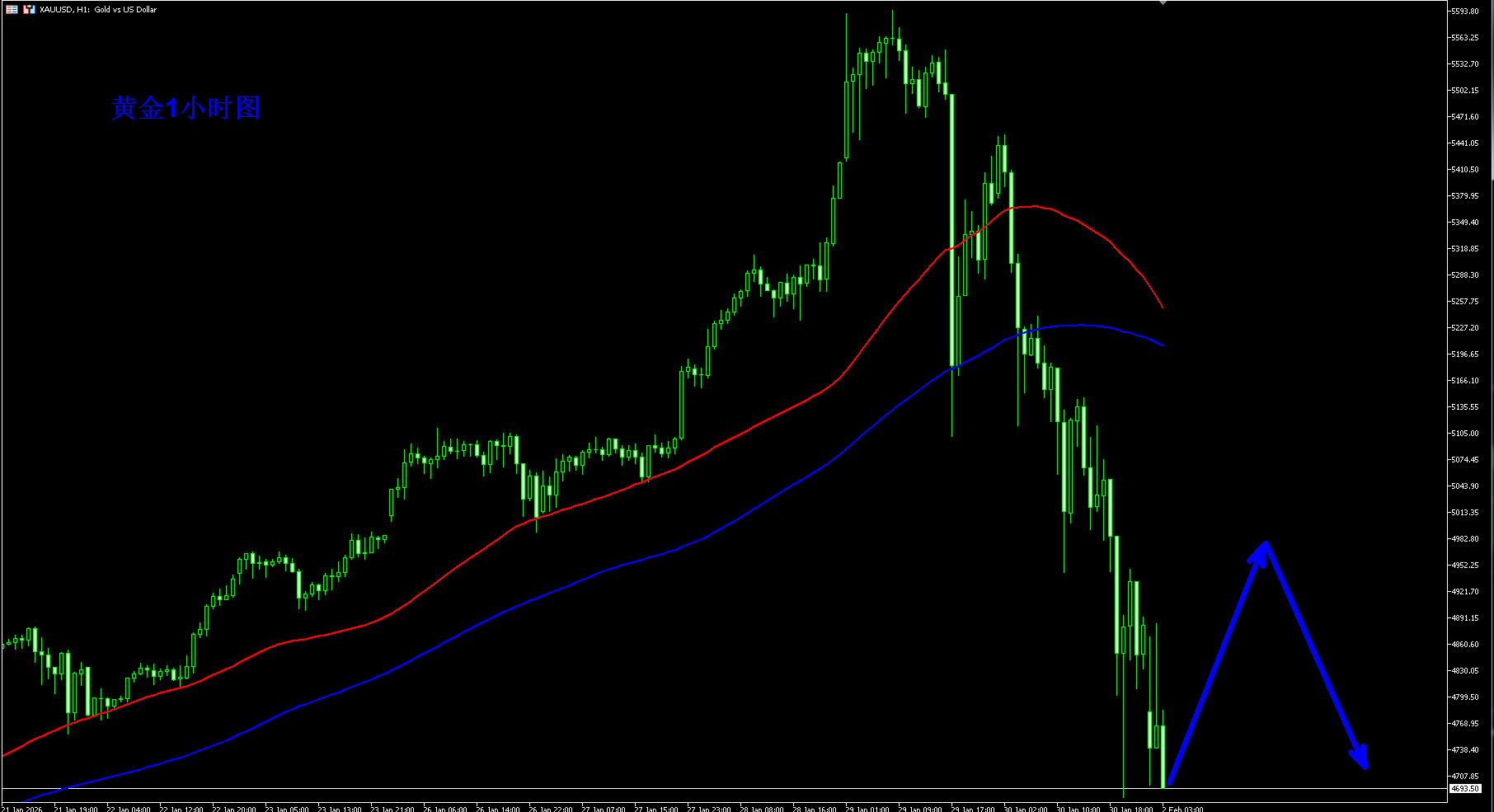 黄金1小时均线已经向下拐头,黄金短线开始变弱,黄金周五探底之后反弹还是继续承压5000关口,黄金早盘承压5000下方可以继续先高空,黄金顺势继续空才是当下最好的操作,不要轻易抄底,情绪没有得到彻底释放,那么黄金可能就还有下行空间。