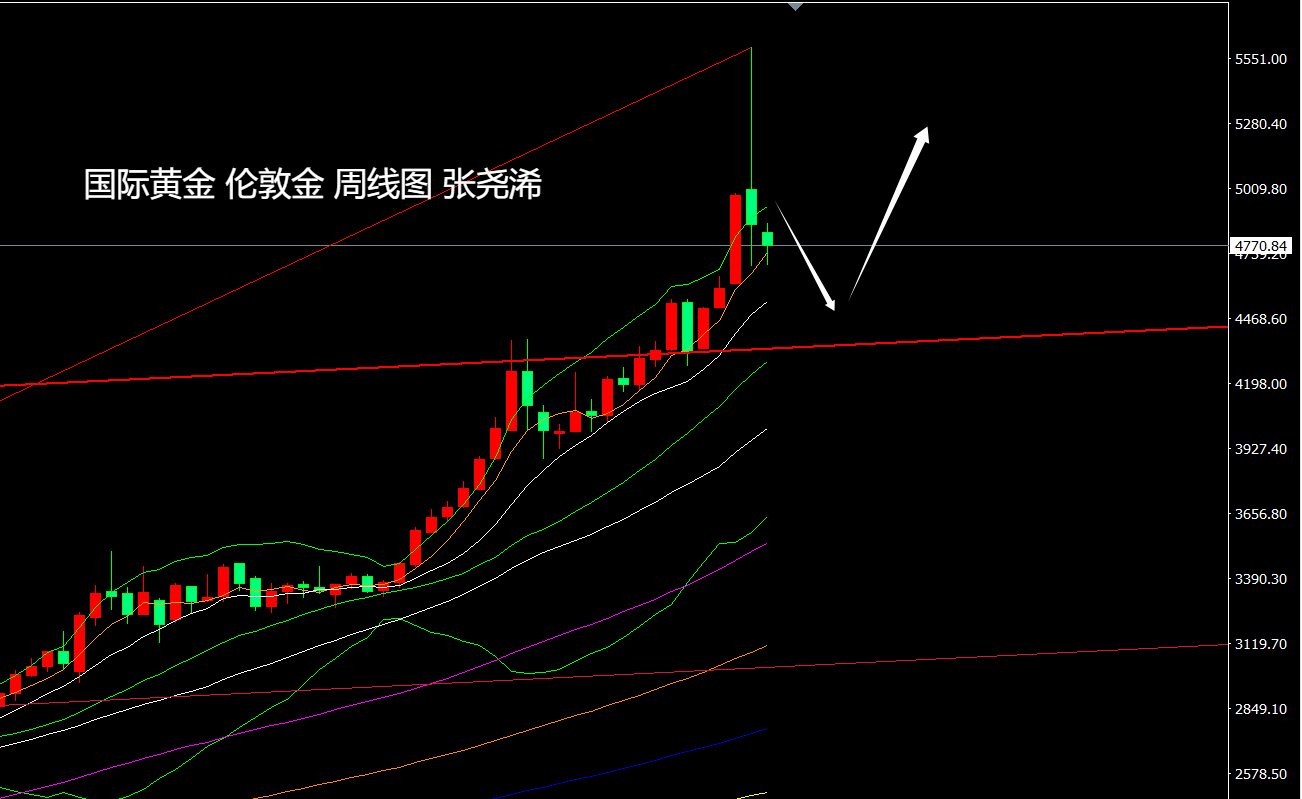 黄金市场上周:国际黄金创历史记录性涨幅后,又创历史记录性大跌,最终收取巨长上影线倒垂形态,对于后市来讲,有再度陷入阶段性见顶调整的预期,以及数周的横盘震荡整理的趋势。但整体的牛市趋势依然有效,每次阶段性的调整,在当下来看,依然还是再度的入场机会。