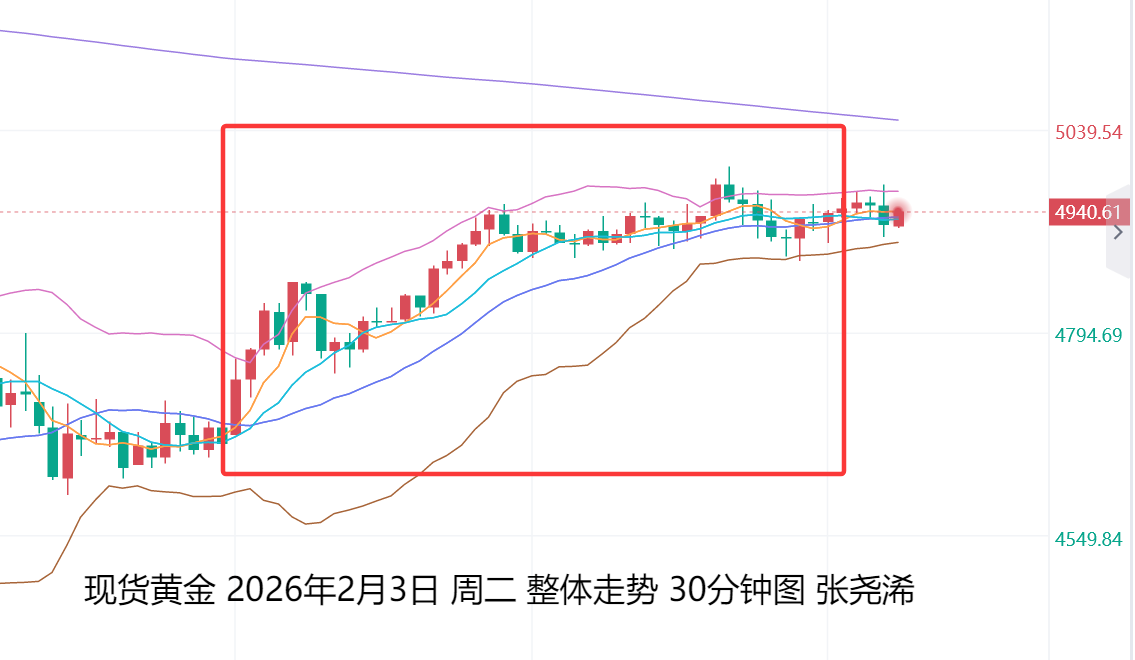 展望今日周三(2月4日):国际黄金开盘,多头动力有所减弱,受到短期均线的阻力压制,有所获利了结,以及特朗普签署法案以结束政府部分停摆,减弱了避险需求,但金价目前已重回布林带中轨等关键支撑上方,多头已占据优势,故此,后市行情,要么是震荡,要么是继续走强,进一步继续走低的概率较小。