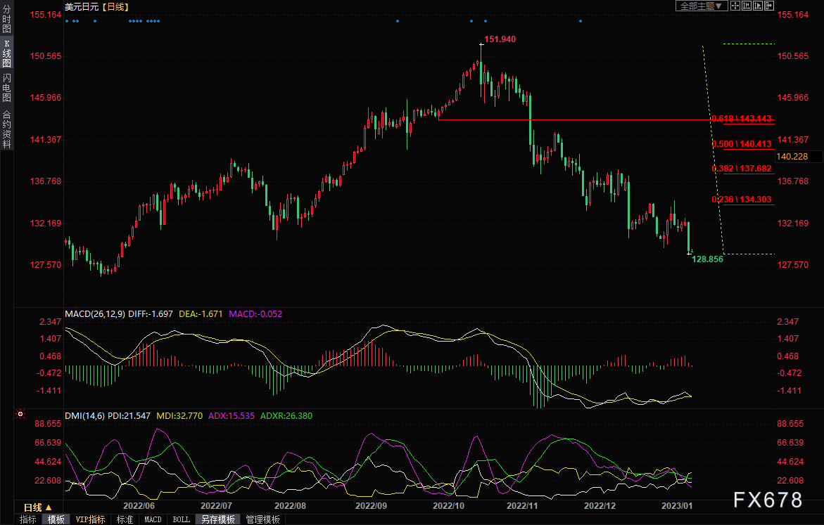 美元兑日元周四收盘下跌2.37%,收报129.28。