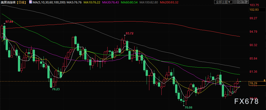 北京时间8:15,美原油现报78.29美元/桶。