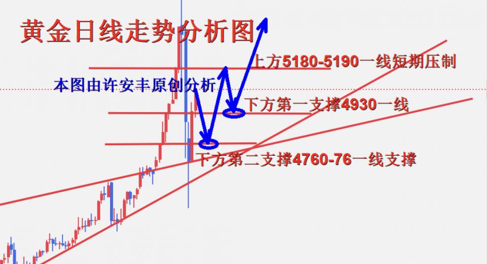 黄金目前的形态显示还有继续刷新高的动能,之前周线的墓碑蜡烛形态只是短期的顶,今天关注5180-92一线位置压制,如果黄金在此位置下面继续跌,形态就会形成新的结构下跌,后面还有大数据和消息面的刺激,今天周三开盘在4948一线震荡回踩冲高,直接突破5000一线关口最高到了5073一线震荡至目前,今天我们主要关注上方5180-5192一线附近的压制情况,大起大落的行情我们必须要谨慎对待,黄金整体还是震荡上行修复为主,短期还将延续多头冲刺,操作上继续保持回踩做多思路进行。如果你也想在黄金市场少走弯路,跟着我的节奏踏实做单,我不敢保证一夜暴富,但能确保每一步都走得稳、赚得明。对黄金感兴趣却无从下手或者操作不理想的朋友可以与老许本人前来沟通交流。