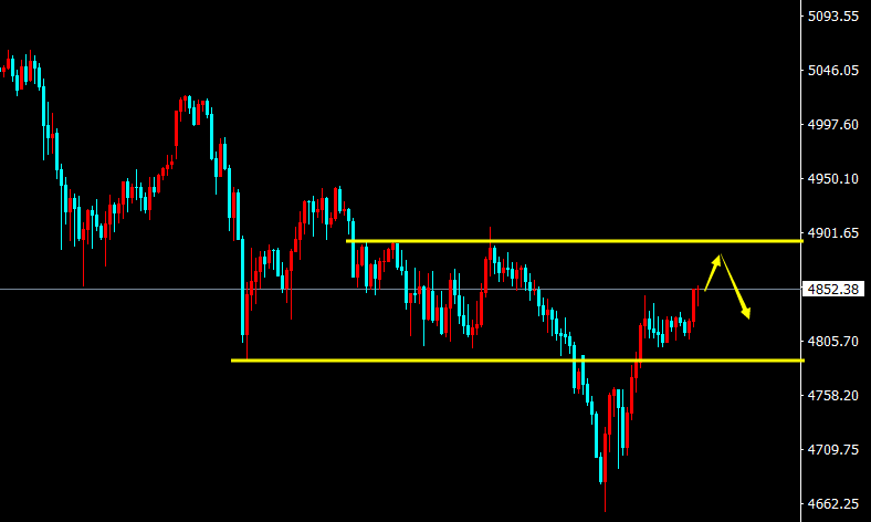 【周五操作】:黄金日内先反抽于4890-95附近做空,目标4830-4800附近,损4910.