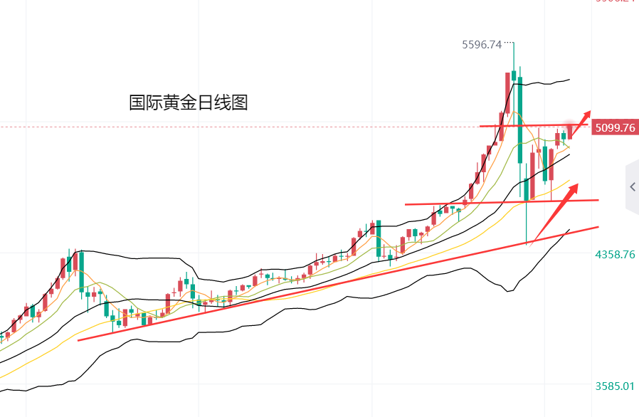 从之后的走势看,昨日周二欧盘盘中,黄金连续试探5060美元遇阻,回落5019美元企稳后,黄金震荡回升,美盘开盘后,涨至5078美元遇阻,在连续回落5000美元整数位置企稳后,黄金震荡回升,周三开盘后涨至5101美元遇阻,目前交投于5094美元。总体来看,黄金反弹遇阻后,连续三个交易日,保持宽幅震荡区间的高位运行,日内金价继续向上试探,到达压力位置5100美元,这基本符合我们关于黄金存在向上突破机会的预期。