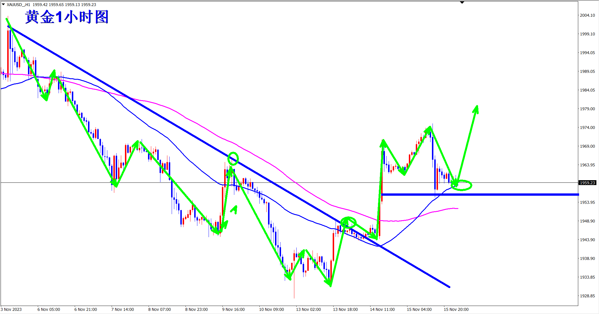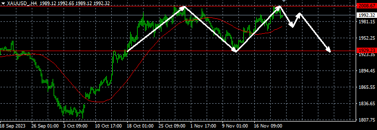 黄金2000空,止损2008,目标1970