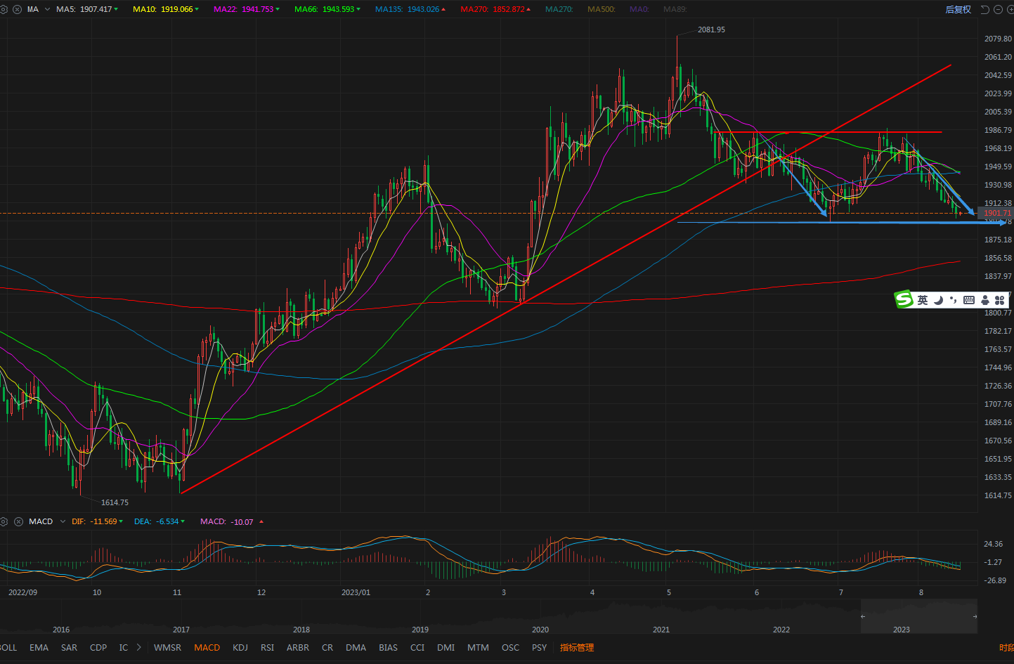 8.18镑日走出穿头破脚之势,今天187.3上砸锅卖铁空
