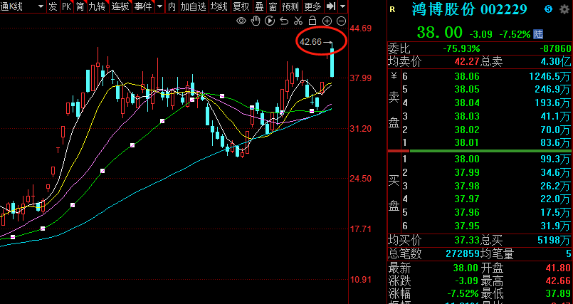 德璞资本:爆了,这票机构怒砸5个亿 说了鸿博新高,开盘资金资金也确实是憋了一股气,猛干到新高,42.66! 点击输入图片描述(最多30字) 好了,一新高,资金