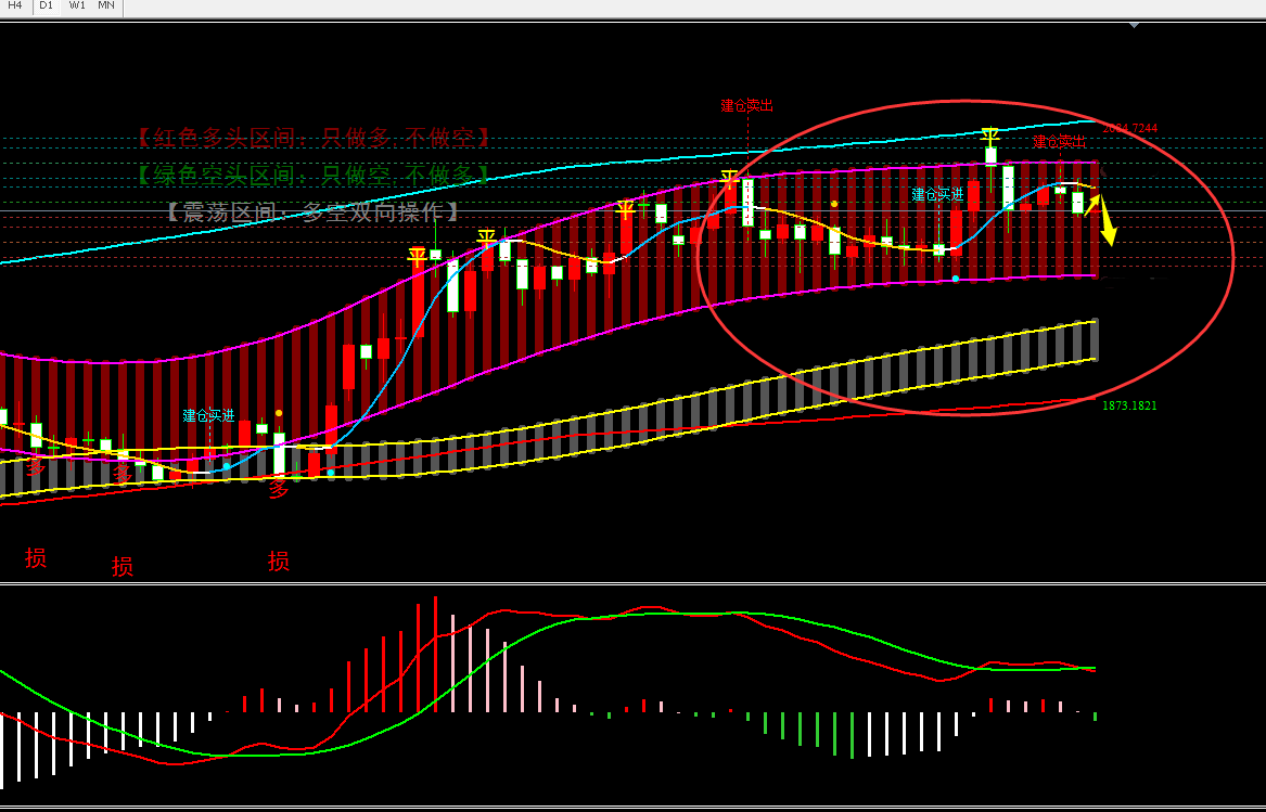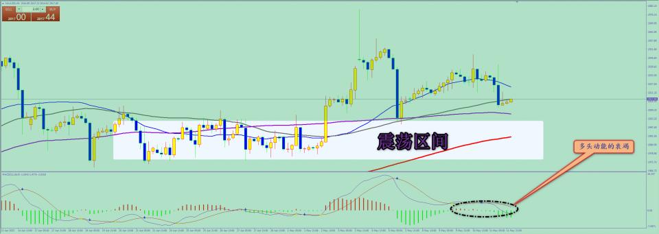 通过对黄金4小时图解析得知,昨日行情再次如期冲高回落,前几个交易日就已经说过行情从1999反弹以来已经有50美金的空间四天的反弹都没有把一天的下跌收复失地说明多头的力道不足,从下方的MACD也可以清楚地看到多