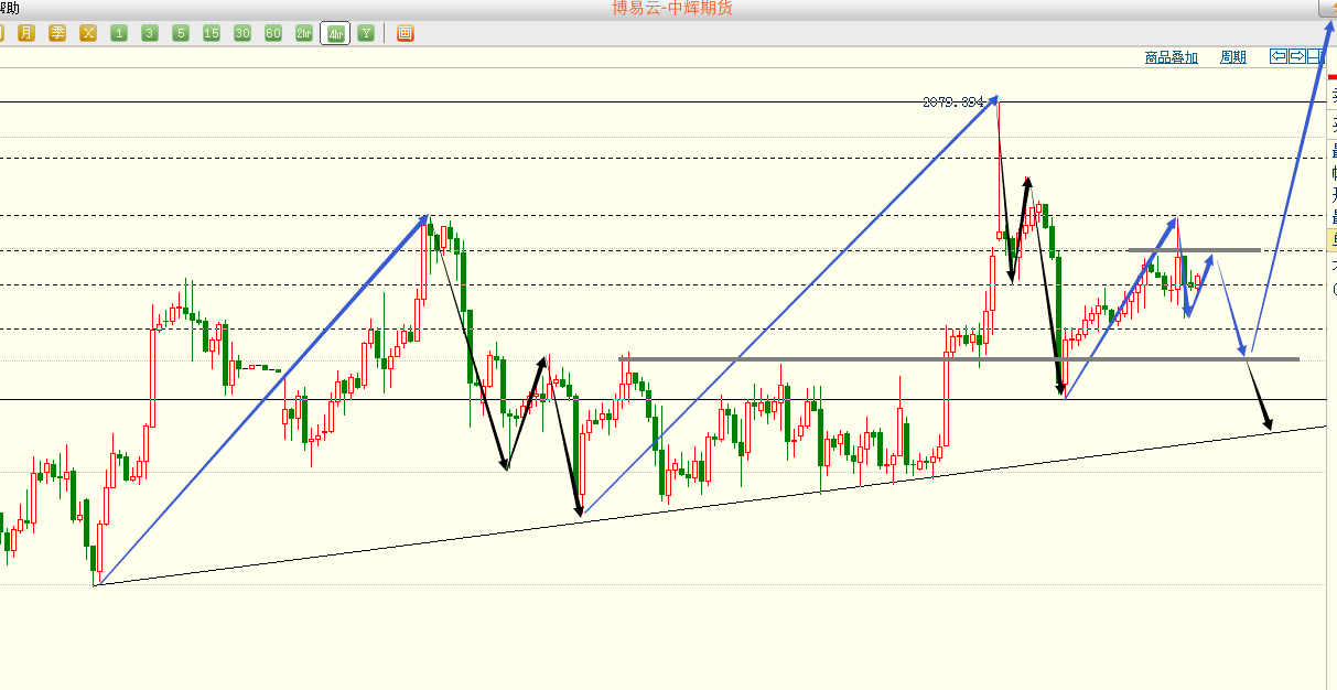 昨天黄金冲高震荡下行,晚间最终走了四小时级别的破位下行,价格最低到达我们预期的2012这里,从当前盘面来看,日图正式走空,价格短期靠近中轨支撑,短期日内重点关注这里,失守将正式打开下跌空间,后市