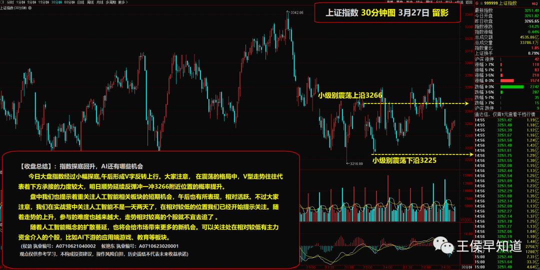 指数围绕3224到3278的箱体震荡 明日大概率触底反弹