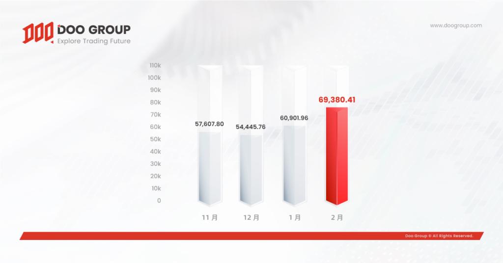 DooPrime2023年2月份交易量报告 数据概览 2月总交易量为693.8亿美元 热门产品:XAU/USD、EUR/USD、GBP/USD XAU/USD交易量最高,达38
