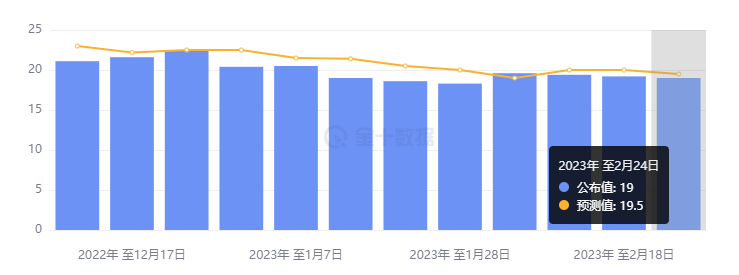 数据再度低于预期,劳动力市场仍强劲 美国至2月24日当周初请失业金人数录得19万人,较前一周的19.2万人减少了2000人,较市场预计的19.5万人略低,且连续第七周低于20万人。