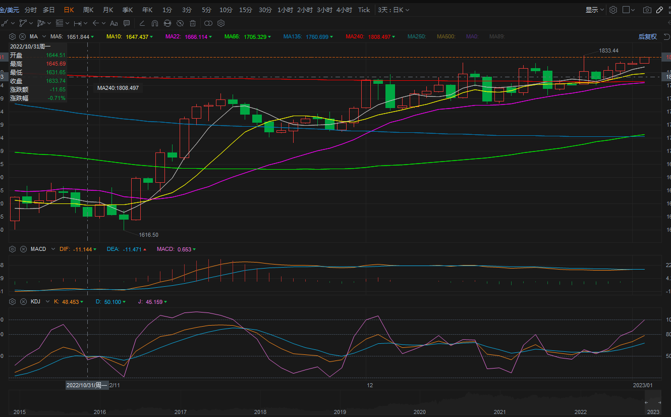 美元下行金价触及 1832.36 美元/盎司,地缘局势升级原油强势上行