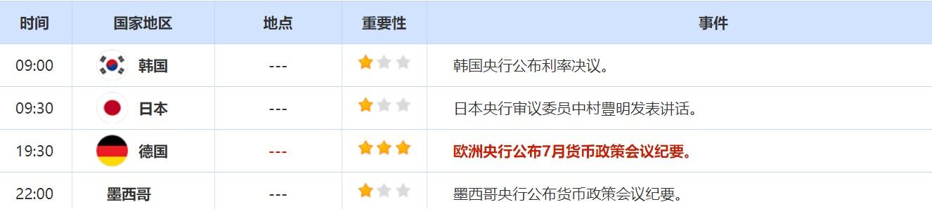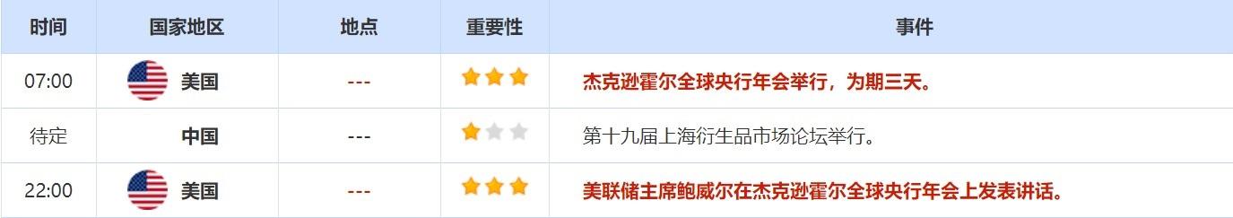 8月25日,投资者还需关注欧洲央行公布7月货币政策会议纪要。