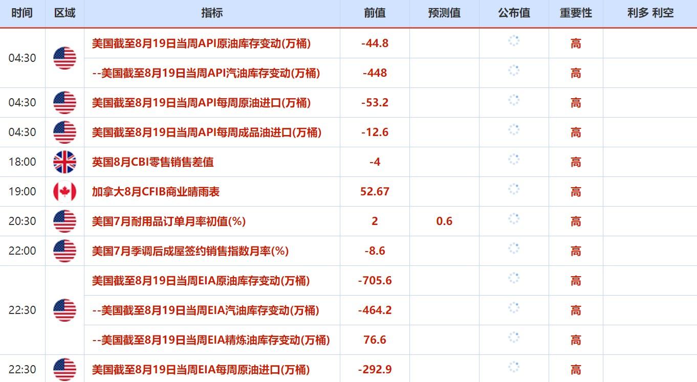 8月22日重点数据和大事件前瞻