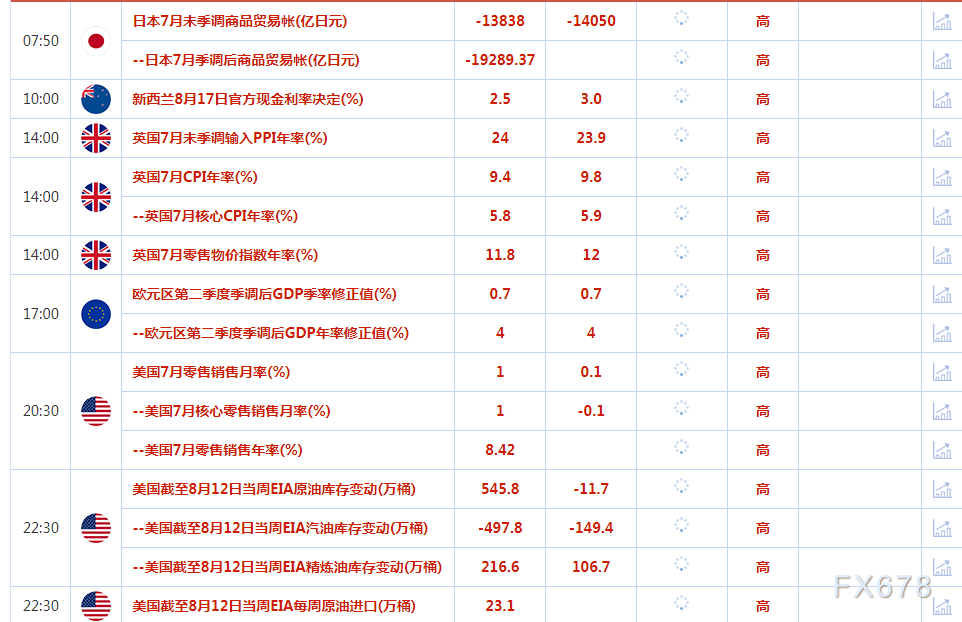 8月18日,新西兰元美元交投于0.6353附近。周三新西兰联储公布8月利率决议,宣布将官方现金利率(OCR)上调50个基点至3%,这也是连续第四次加息50基点,利率水平因此升至2015年最高水平。 新西兰联储决议声明